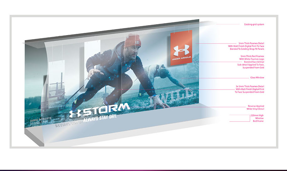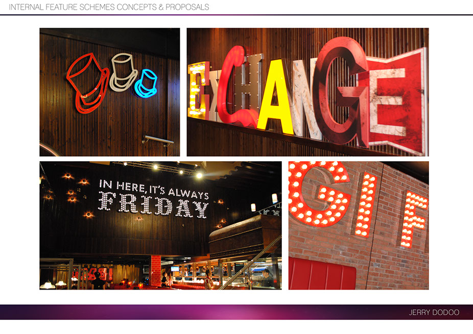 Designed, visualised & production detail for display features sign schemes and for retail, office environments, bars & restaurants.